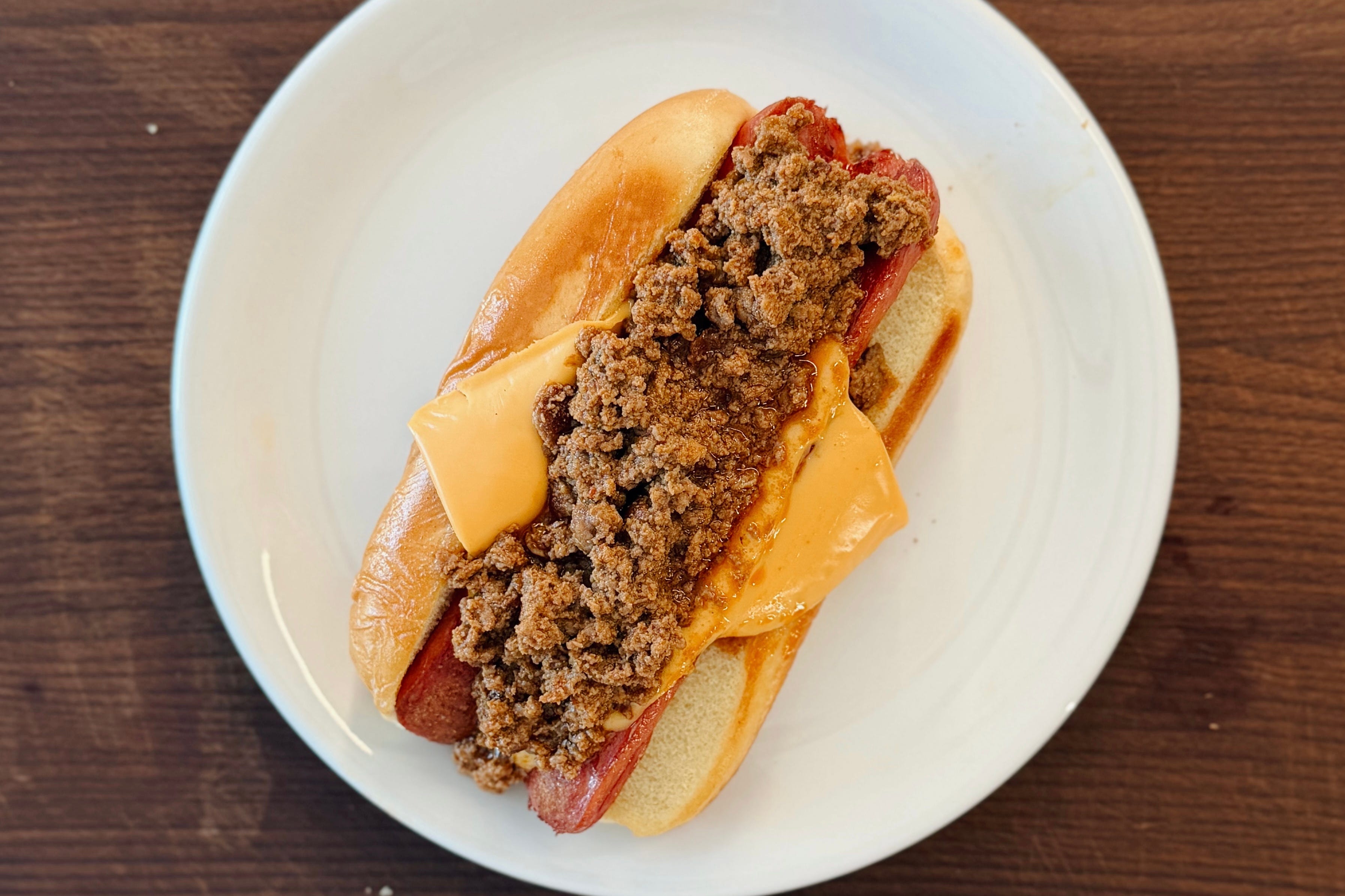 The technique matters more than you would think. Browning the meat in large pieces first builds deep flavor. Breaking it up by hand keeps the texture consistent and uniform. Stock is added gradually, so the beef fat and liquid emulsify into something cohesive rather than greasy or soupy. While this chili was built with hot dogs in mind, it works equally well for chili cheese fries, nachos, or even burritos.